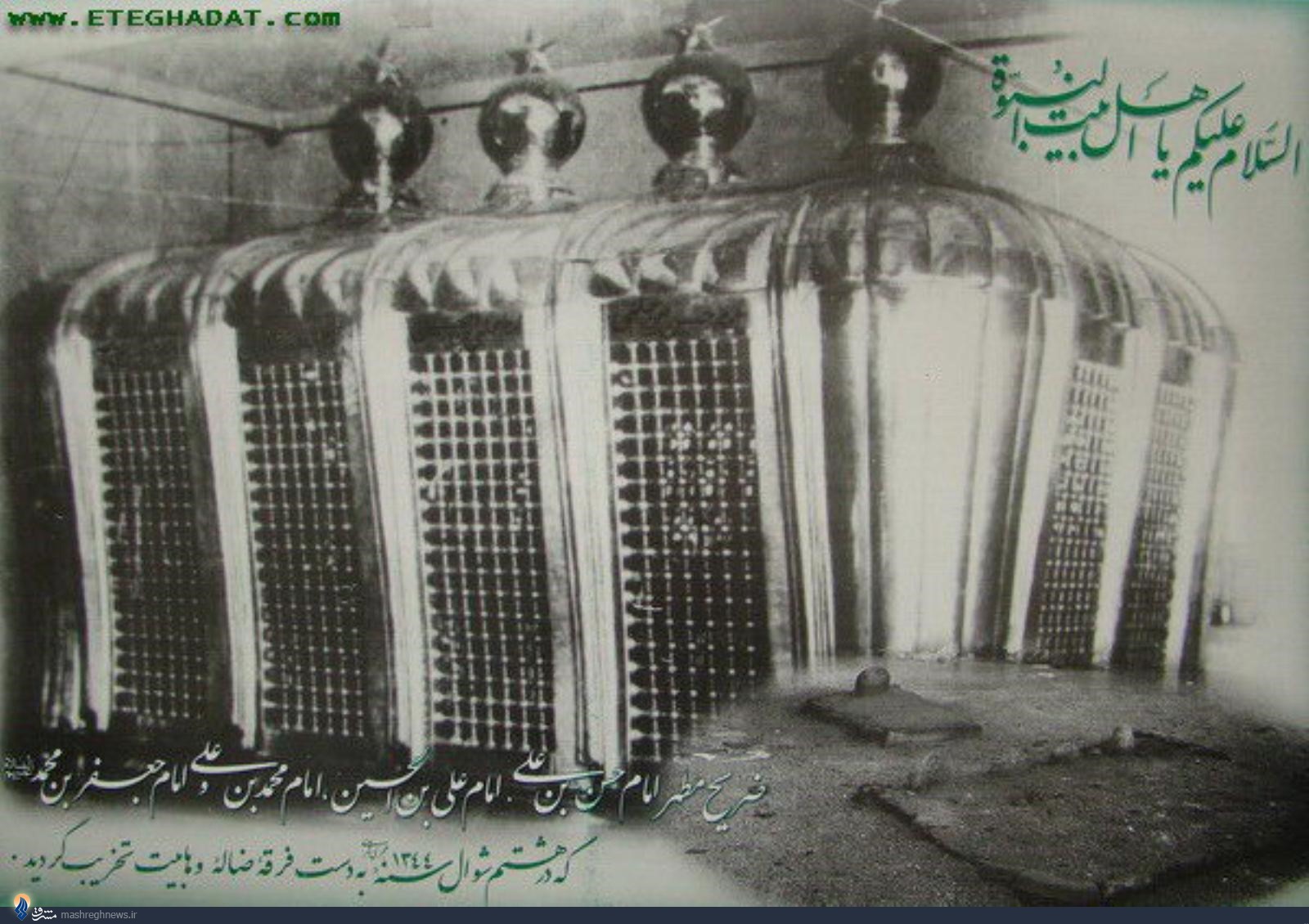 1344هـ.ق کلیه این بناها و گنبدها و آثار را ویران و اموال و اشیای گرانقیمت