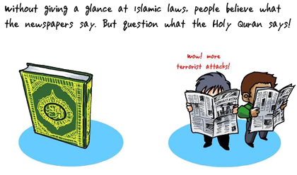 مردم هر آنچه را که روزنامه ها می گویند باور می کنند بدون اینکه نگاهی به قوانین اسلام بی اندازند. اما آنچه قرآن می گوید را مورد سؤال قرار می دهند!